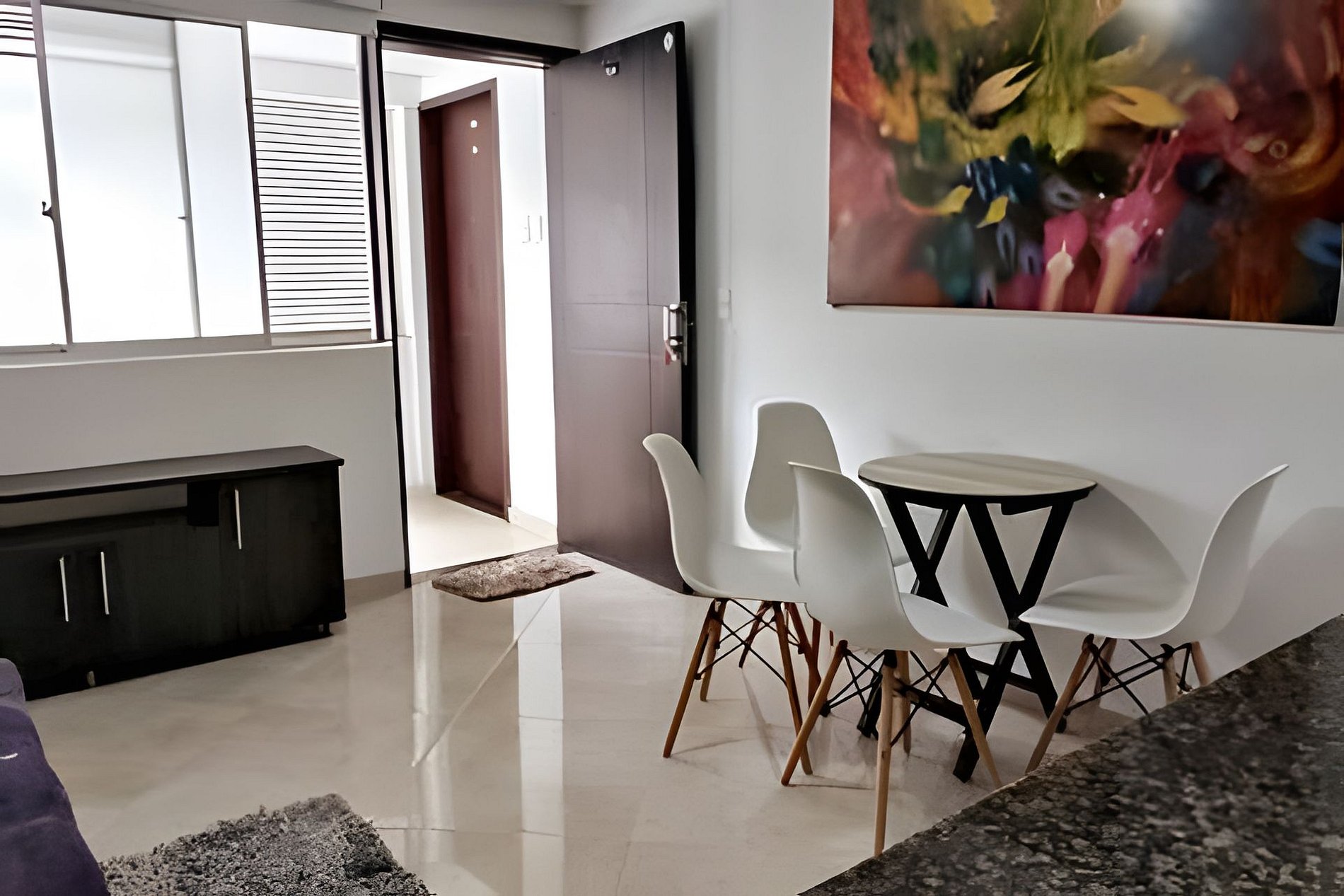 Este apartaestudio ubicado en un tranquilo conjunto residencial en San Gil, ofrece una excelente vista a la piscina desde su balcón. Cuenta con una habitación con cama doble y una sala con sofá cama, con capacidad máxima para 3 personas. Dispone de parqueadero y las comodidades para una estancia placentera.